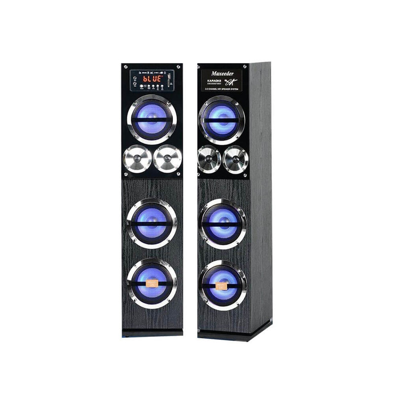 اسپیکر دو تکه CN41 با دارا بودن 4 ساب 6.5، 2 میدرنج 6.5 ، 2 تیوتر و قابلیت آمپلیفایر DSP یکی از قویترین سیستمهای موجود در بازار است و میتواند صدایی قوی و با کیفیت همراه با امکانات مختلف را برای پخش مراسم شما در خانه و یا سالنها به ارمغان آورد. دارای پورتها و راههای ارتباطی USB ، SD ،Bluetooth 5 ، AUX ، صفحه نمایشگر LED چهار دیجیت نارنجی ، 2 عدد ورودی میکروفون و ورودی اپتیکال و رادیو FM است. این دستگاه همراه با یک میکروفون کابلدار به طول 3 متر همراه با قابلیتهای ریورب، باس و تربل و anti-whistle عرضه میشود که میتوانید با آن به ضبط صدا با قابلیت تغییر 4 نوع صدای صوت و فعالیت جذاب و سرگرمکننده کارائوکه بپردازید. کارائوکه قابلیتی است که در دستگاههای لوکس و پیشرفته پخش خانگی وجود دارد. به این صورت که شما میتوانید برای سرگرمی یا تمرین خوانندگی صدای خواننده را از پسزمینه آهنگ در حال پخش پاک کرده و خودتان به خواندن و ضبط آن بپردازید. مدل CN41 با توان خروجی 33000 وات با قابلیت (Peak Momentary Power Output) PMPO یکی از قدرتمندترین دستگاههای پخش خانگی است.