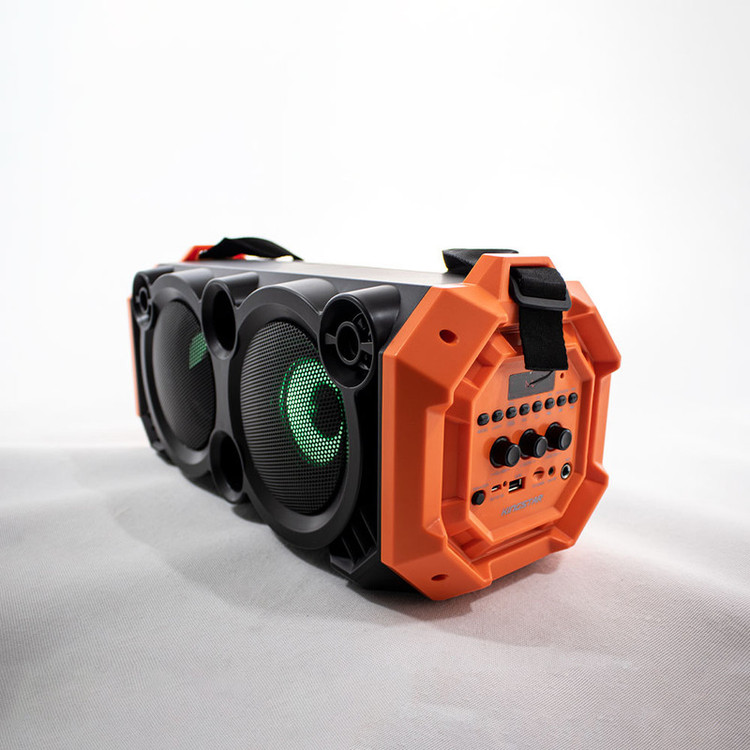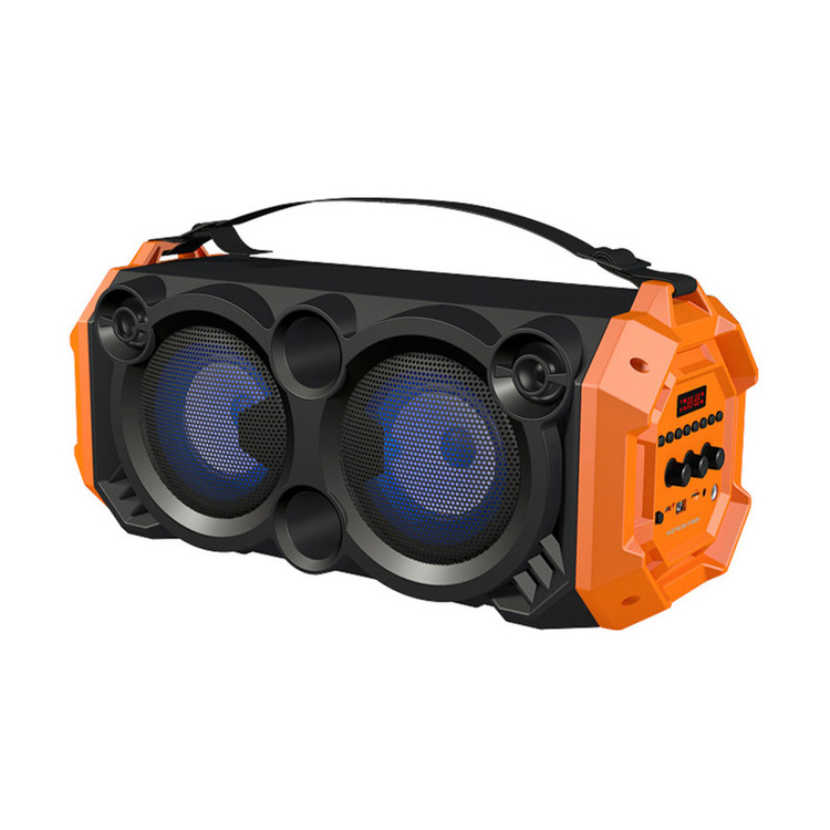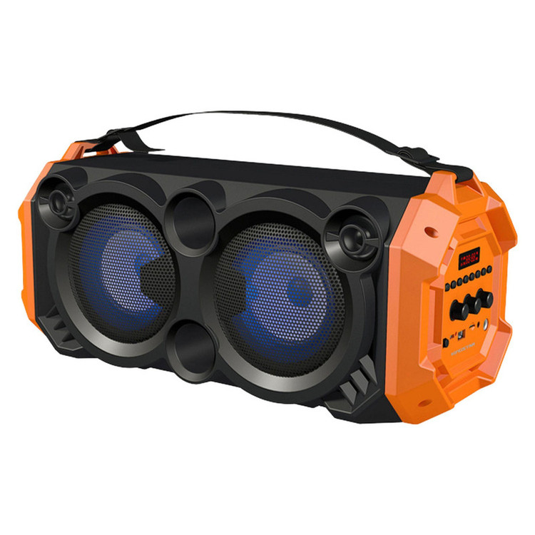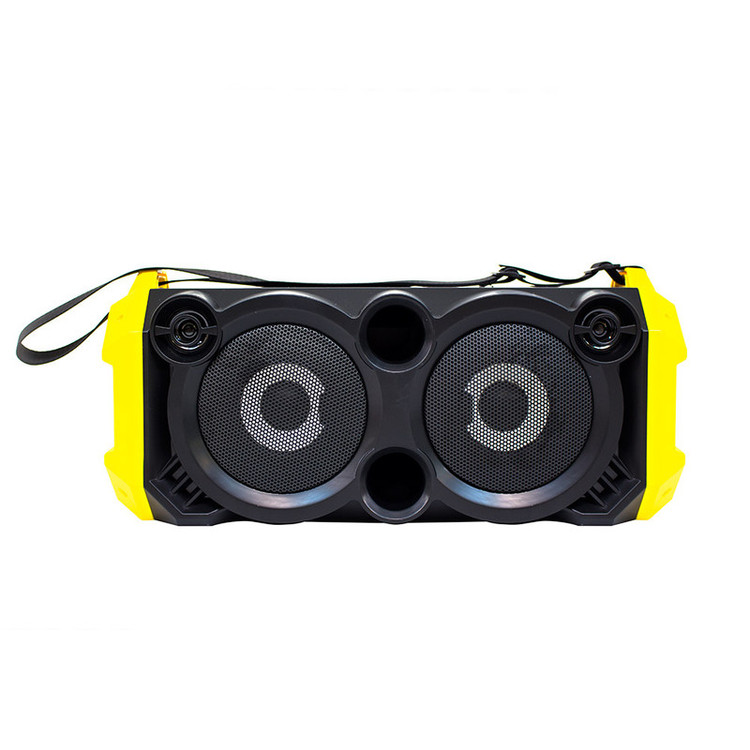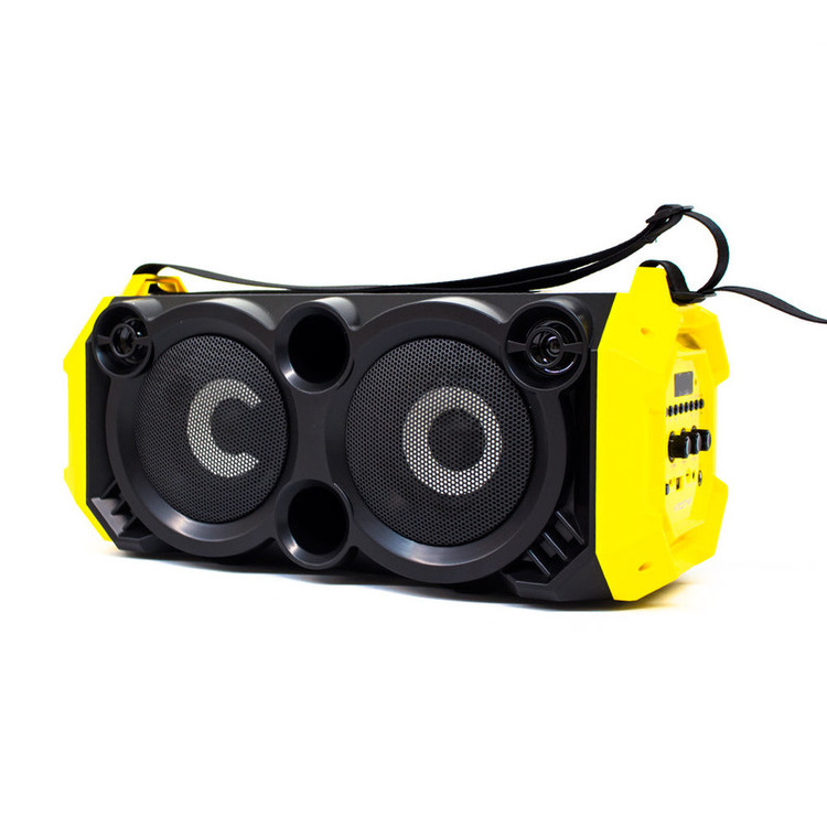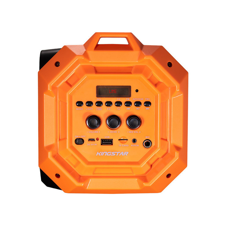 اسپیکر KBS345 کینگ استار محصولی با طراحی بسیار خاص و جذاب است. رنگ زرد به کار رفته در کنارههای این محصول نشاندهنده و انتقالدهنده انرژی است. این محصول علاوه بر طراحی و رنگ جذابش دارای قابلیت رقص نور نیز است. این اسپیکر دارای قابلیت بلوتوث بوده که میتوانید آن را با دستگاه خود همگام کنید. اگر طرفدار برنامههای رادیویی باشید یا در یک کمپ همراه دوستانتان بخواهید مسابقه فوتبال را از طریق رادیو دنبال کنید این اسپیکر پاسخگوی نیاز شما خواهد بود زیرا که از FM Radio پشتیبانی میکند. اگر نگران سختی حملونقل آن هستید، طراحان محصول به این قسمت نیز فکر کردهاند و با قرار دادن بندی آویز با استحکام و مقاومت بالا، حملونقل و انتقال محصول را آسان کردند. روی صفحه کنترل این اسپیکر یک صفحه LED کوچک قرار دارد، سه کلید چرخشی که هر یک برای تنظیم صدای اسپیکر، صدای میکروفون و میزان اکو استفاده میشوند و سوکت میکروفون نیز وجود دارد که میتوانید میکروفون خود را به آن متصل کنید و خروجی صدای آن را تنظیم کنید. پورت USB به شما امکان اتصال فلش مموری خود به دستگاه را میدهد و پورت TF آن شما را از یک دستگاه پلیر کارت حافظهدار بینیاز میکند.