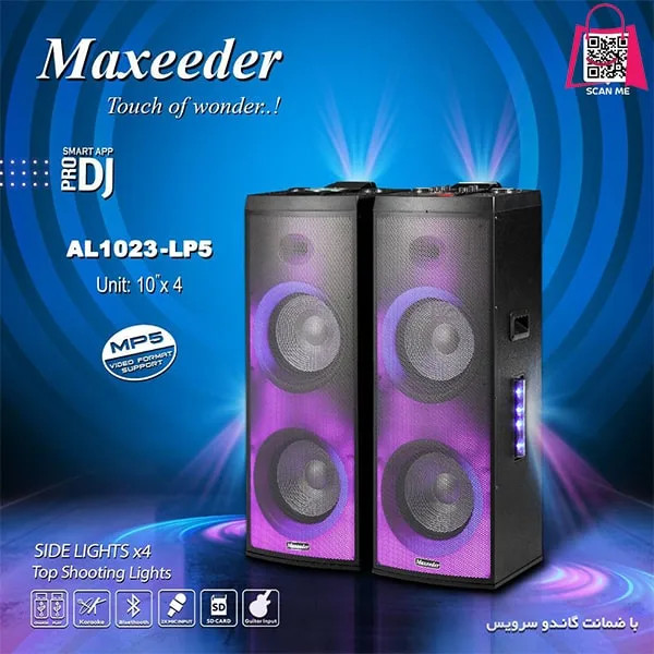 برند Maxeeder با تولید اسپیکر ایستاده مکسیدر مدل AL 1023 سهم قابل توجهی را فروش سیستم صوتی در بازار را به خود اختصاص داد. این محصول مجهز به 4 درگاه USB (2 عدد برای ورودی فلش + 2 عدد برای شارژ کردن) بوده که برای کاربران، از آپشن های کاربردی به کاررفته در یک اسپیکر محسوب میشود. همچنین تجهیز این محصول به تکنولوژی بلوتوث، این امکان را به کاربران داده که فایل های تصویری و صوتی خود را از طریق اتصال به Bluetooth دستگاه، پخش کنند.